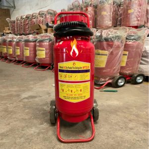 Với bột chữa cháy dạng ABC, bình chữa cháy này có khả năng chữa cháy đa dạng, bao gồm cả ngọn lửa cháy ở dạng rắn như gỗ, sắt, và điện. Thành phần hóa học trong bột bao gồm NaHCO3, Na2CO3, CO2 và H2O, giúp kìm hãm phản ứng cháy và ngăn chặn sự lan rộng của lửa. Bình đi kèm với xe đẩy tích hợp, giúp di chuyển dễ dàng và có thể tháo rời khi cần thiết.
